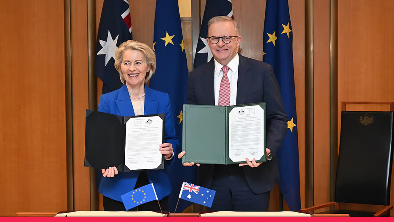 দীর্ঘ কয়েক বছরের টানাপোড়েন ও দরকষাকষি শেষে সোমবার অস্ট্রেলিয়া ও ইউরোপীয় ইউনিয়নের মধ্যে বহুল প্রতীক্ষিত এক ঐতিহাসিক মুক্ত বাণিজ্য চুক্তি স্বাক্ষরিত হয়েছে। অস্ট্রেলিয়ার রাজধানী ক্যানবেরায় এক জমকালো অনুষ্ঠানের মাধ্যমে ইউরোপীয় কমিশনের প্রেসিডেন্ট উরসুলা ফন ডার লেয়েন এবং অস্ট্রেলিয়ার প্রধানমন্ত্রী অ্যান্থনি অ্যালবানিজ এই চুক্তিতে স্বাক্ষর করেন। এই চুক্তির ফলে কেবল বাণিজ্যই নয়, বরং নিরাপত্তা, প্রতিরক্ষা এবং অতি-প্রয়োজনীয় খনিজ সম্পদ সরবরাহের ক্ষেত্রেও দুই পক্ষের মধ্যে এক নতুন শক্তিশালী অংশীদারিত্বের সূচনা হলো।