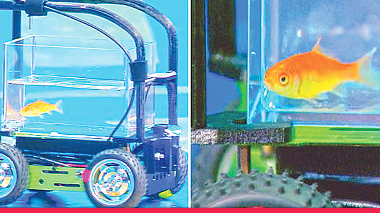 ছোট একটি চার চাকার গাড়ির ওপর বসানো হয়েছে পানিভর্তি অ্যাকোয়ারিয়াম। মাছটি অ্যাকোয়ারিয়ামের ভেতরে যেদিকে সাঁতার কেটে যাচ্ছে, বিশেষ সেন্সরের মাধ্যমে গাড়িটিও ঠিক সেদিকেই চলতে শুরু করে।