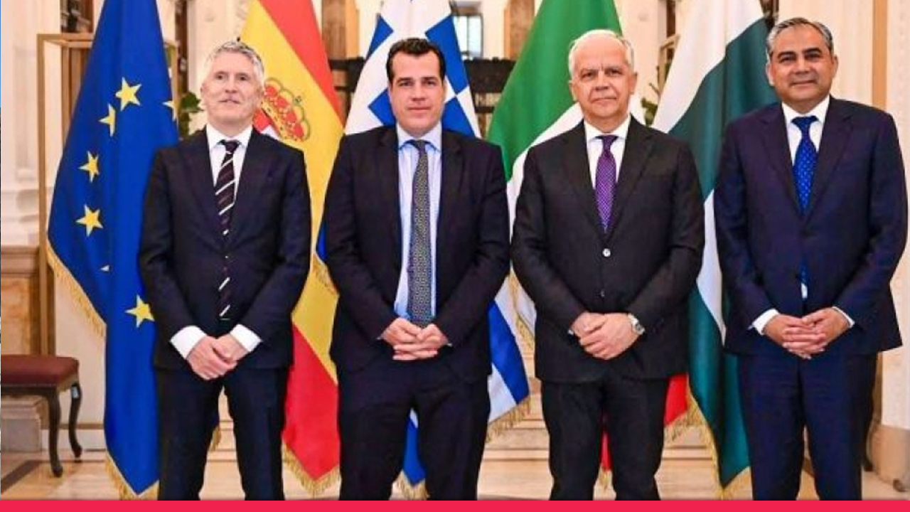 ইতালির রাজধানী রোমে সম্প্রতি একটি বিশেষ ধরনের চার‑দেশীয় বৈঠক অনুষ্ঠিত হয়েছে, যেখানে অংশ নিয়েছেন ইতালির স্বরাষ্ট্রমন্ত্রী মাত্তেও পিয়াতেদোসি, স্পেনের স্বরাষ্ট্রমন্ত্রী ফেরনান্দো গ্রান্ডে‑মার্লাসকা, গ্রিসের মাইগ্রেশন ও অভিবাসন মন্ত্রী আতনাসিওস প্লেভ্রিস এবং পাকিস্তানের স্বরাষ্ট্রমন্ত্রী মোহসিন নাকভি। এই বৈঠকটি অবৈধ অভিবাসন, মানবপাচার, অপরাধ চক্র ভাঙা এবং নিয়ন্ত্রিত/আইনি অভিবাসন‑ পথ তৈরির বিষয়ে যৌথ কৌশল ও পরিকল্পনা নিয়ে করা হয়েছে।